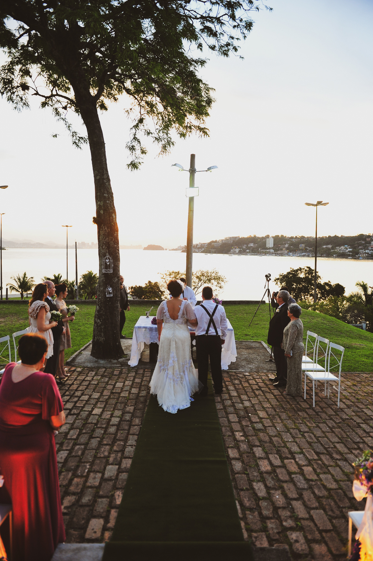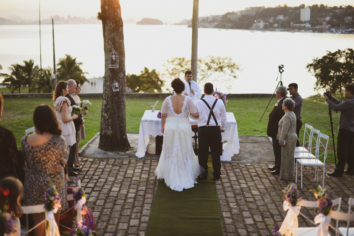 Casamento no por do sol! Um lindo mini wedding ao ar livre com ares vintage em cartão postal de Niterói! Esta e a descricao do evento do post que preparamos! Como hoje muitas noivas desejam algo intimista e sonham em vestir algo com conforto e fora dos padrões, a Alessandra foi uma noiva neste perfil! Amei o vestido que a Aline Ciafrino desenhou para ela! Adoro noivas que decidem tudo com personalidade e no final ficam convictas do que escolheram , isso da uma alegria imensa para todos os envolvidos!!!!