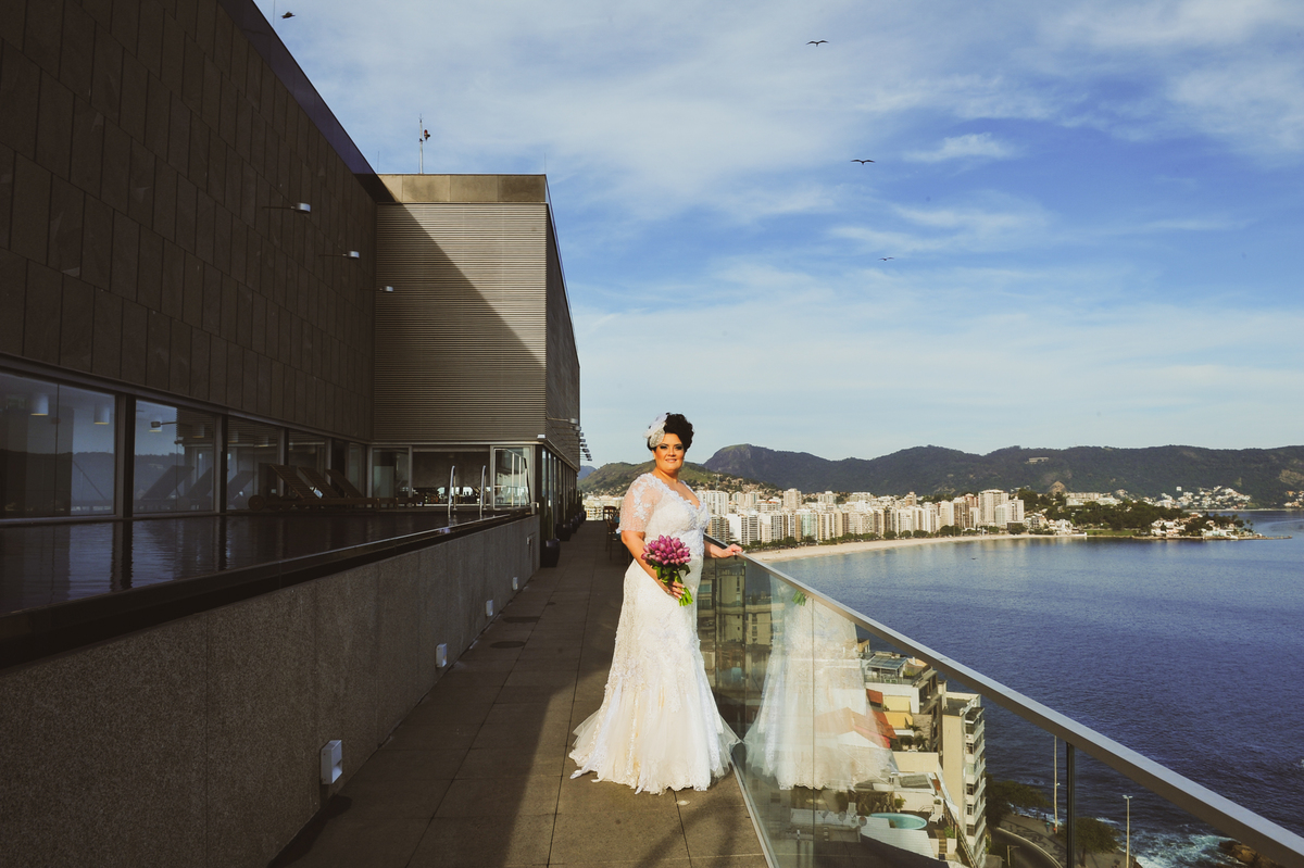 A noiva Alessandra amou tanto o resultado do vestido que topou fazer um verdadeiro editorial antes da cerimônia. Fizemos muitas fotos no terraço do hotel H e ainda fomos para a praia de Charitas que fica bem perto ldo local da cerimônia! Fica a dica para as noivas que vao se casar de dia e tem que planejar o horário da make para poder ter retratos incríveis vestida de noiva. Deu tudo certo porque a equipe de beleza arrasou!!!!!!!